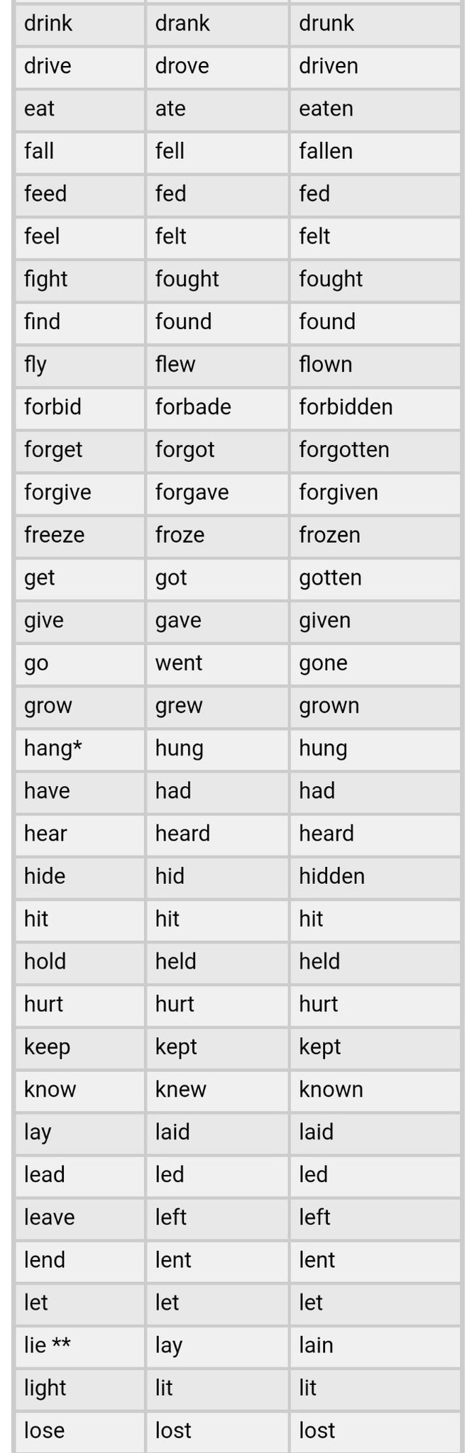 قائمة تصريفات الافعال الشاذة في اللغة تعلم اللغة الإنجليزية Facebook