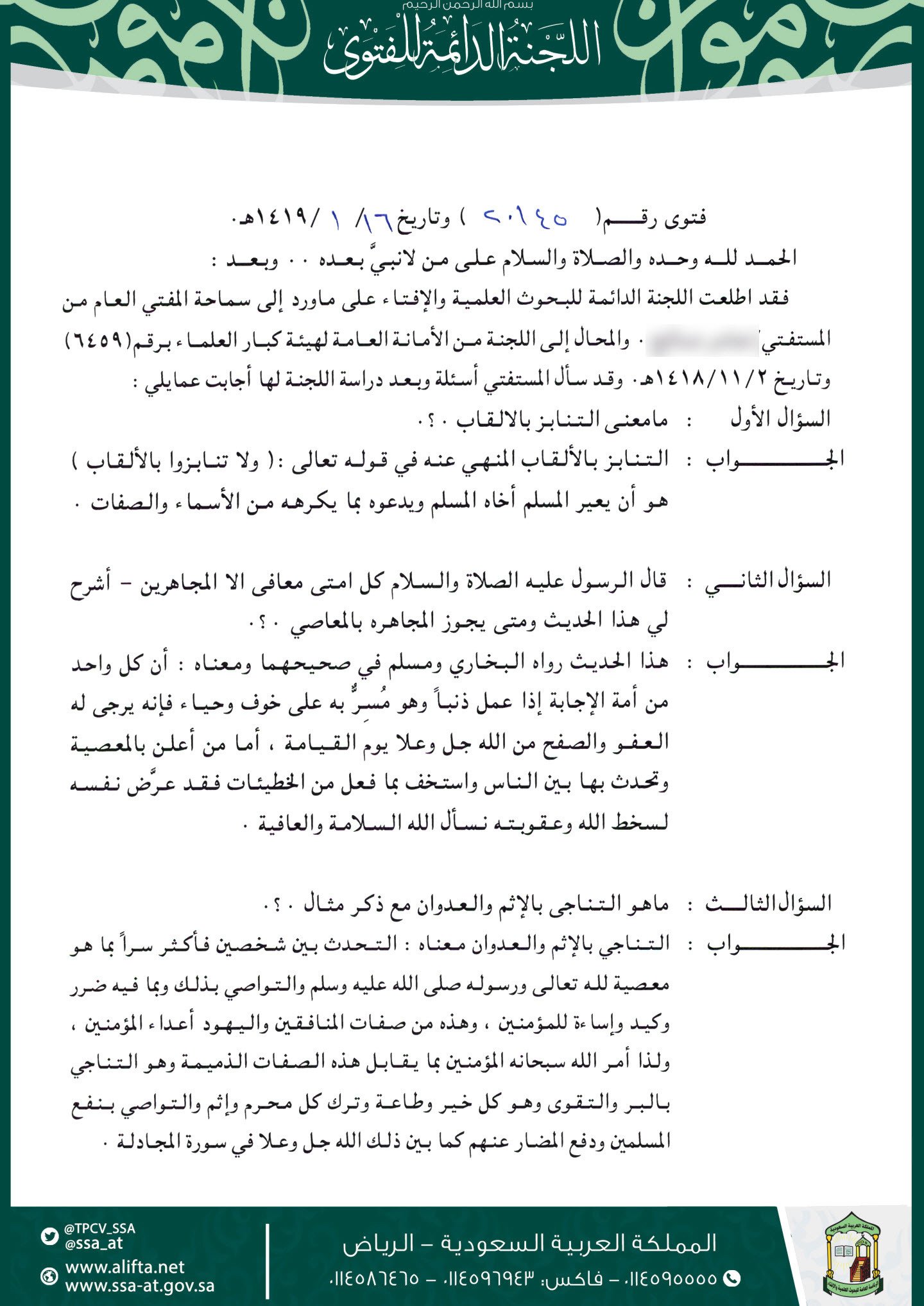 اللجنة الدائمة للفتوى On Twitter معنى التنابز بالألقاب
