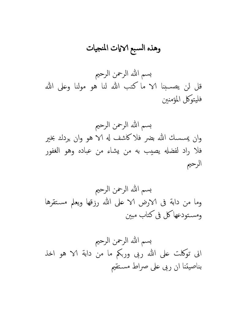 دعاء السبع ايات المنجيات