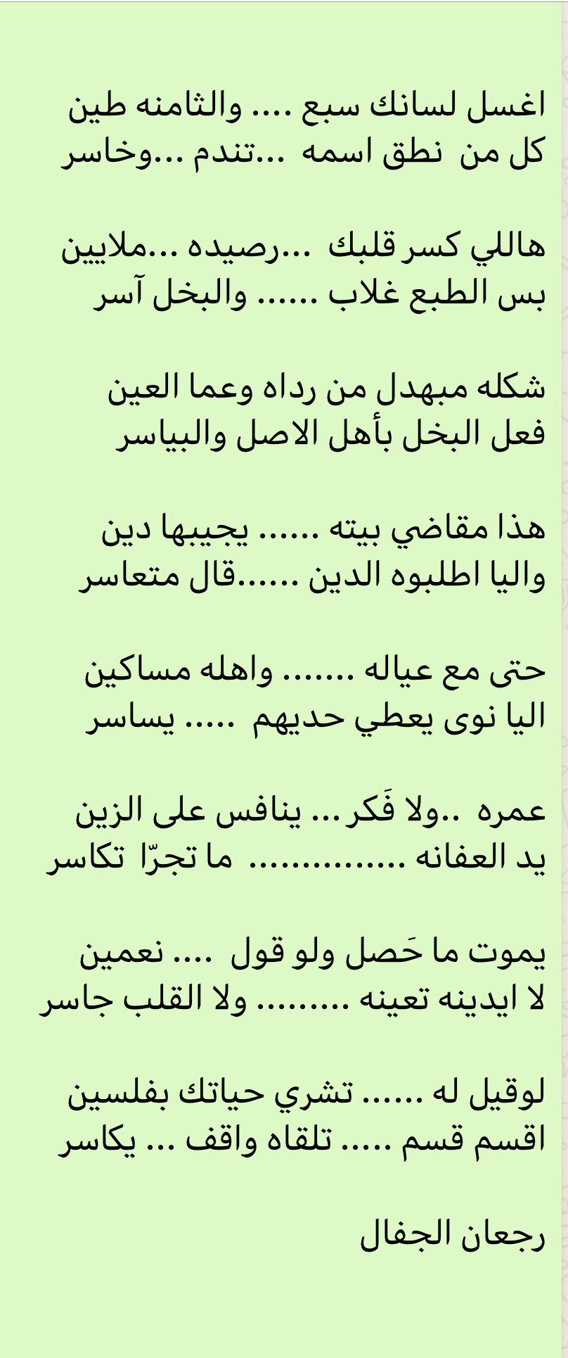 الإعلامي رجعان الجفال الظفيري A Twitter كوارث البخل هاللي كسر قلبك رصيده ملايين بس الطبع غلاب والبخل آسر هذا مقاضي بيته يجيبها دين واليا اطلبوه الدين قال متعاسر لوقيل له