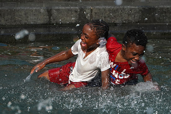 بسبب الطقس الحار اطفال امريكا يلعبون فى نافورة حديقة واشنطن سكوير فى نيويورك