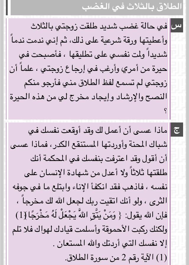 قبل التطرق إلى كفارة هذا اليمين لا بد من الإشارة إلى أن الطلاق من الأمور التي تترتب عليها العديد من العواقب الوخيمة على الأزواج والأبناء إن وجدوا لذلك على الرجل أن لا يتلفظ به على سبيل المزاح أو بسبب الغضب ففي. إذا كان الطلاق المذكور وقع منك في حالة شدة الغضب وغيبة الشعور وأنك لم تدرك نفسك ولم تضبط أعصابك بسبب كلامها السيئ وسبها لك وشتائمها ونحو ذلك وأنك طلقت هذا الطلاق في حال شدة الغضب وغيبة الشعور وهي معترفة بذلك. يراه الشيخ ابن باز رحمه الله عندئذ ينبغي النظر إلى حال المرأة وقت الطلاق هل هي حائض أو لا وإذا لم تكن حائضا بل في طهر.