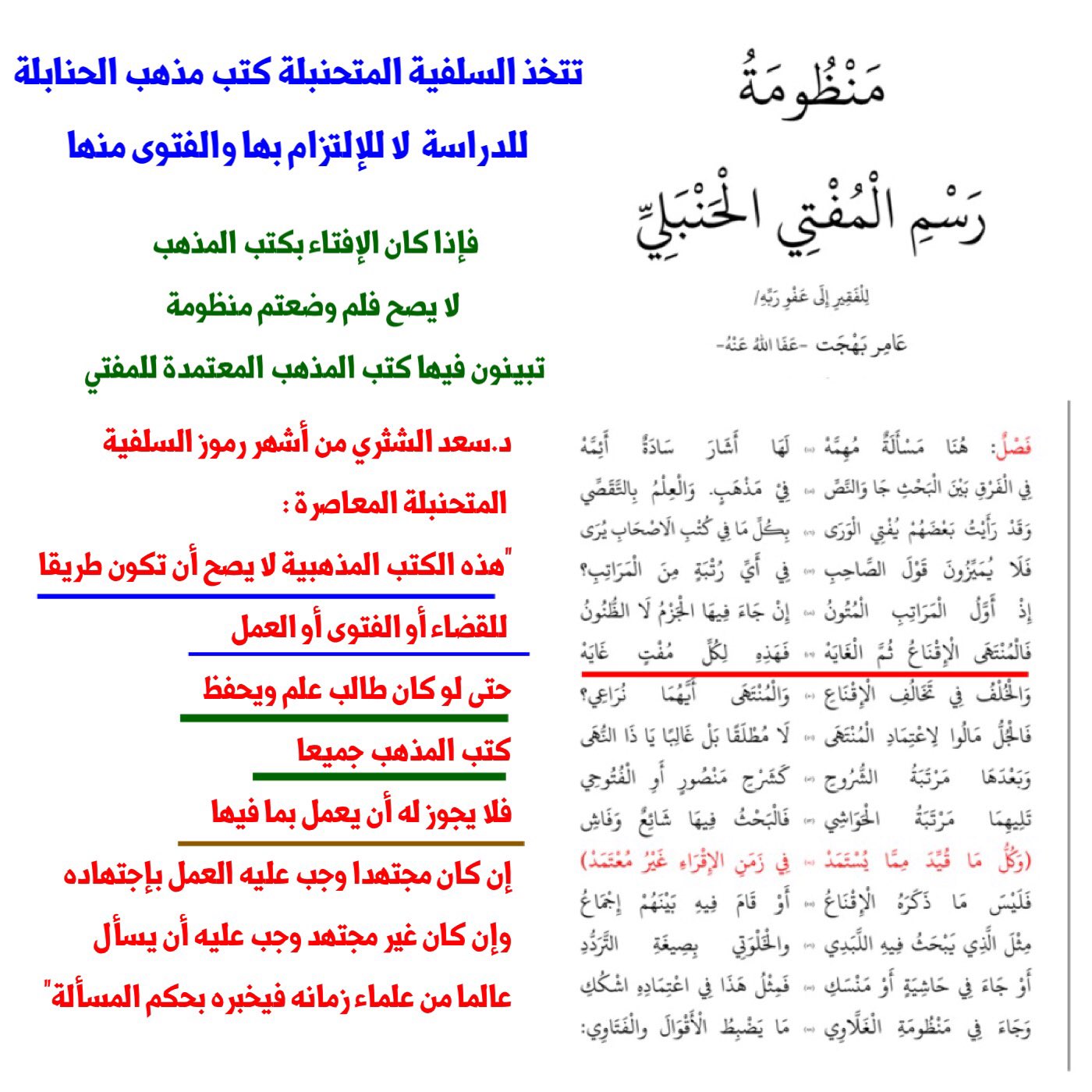 فواز البرازي On Twitter من تناقضات السلفية المتحنبلة د عامر بهجت يضع منظومة للإفتاء ويذكر فيها الكتب المعتمدة في الفتوى ود سعد الشثري الكتب المذهبية لا يصح أن تكون طريقا للقضاء