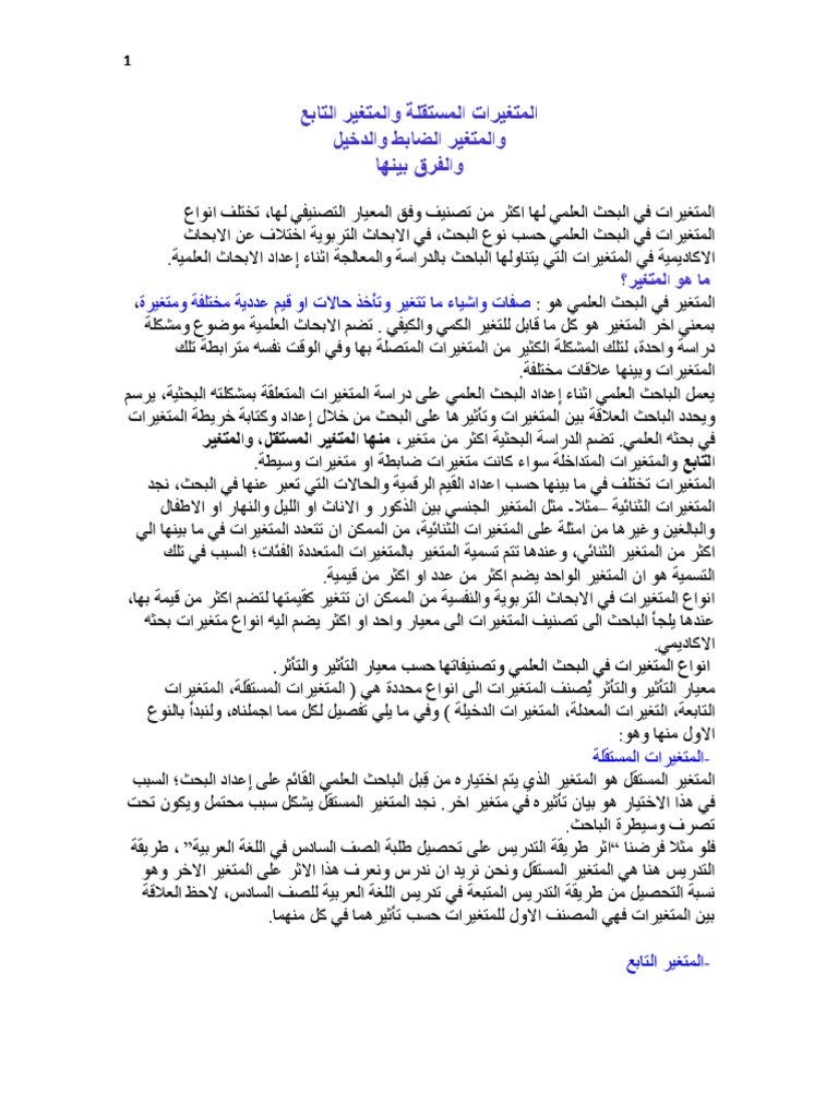 المتغيرات المستقلة والتابع والضابط والدخيل أكاديمية الوفاق للبحث العلمي و التطوير